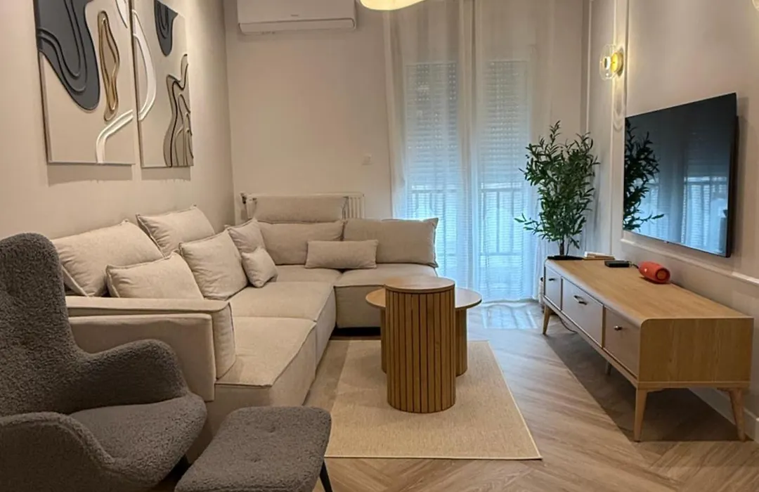 Αυτό το κατάλυμα διαθέτει εξοπλισμένη μικρή κουζίνα καθώς και φούρνο και πλυντήριο πιάτων. Το Homey Luxury 2 Bedroom Apartment 70 τ.μ. Απέχει μόλις 10 λεπτά με τα πόδια από τη στάση λεωφορείων Mousia